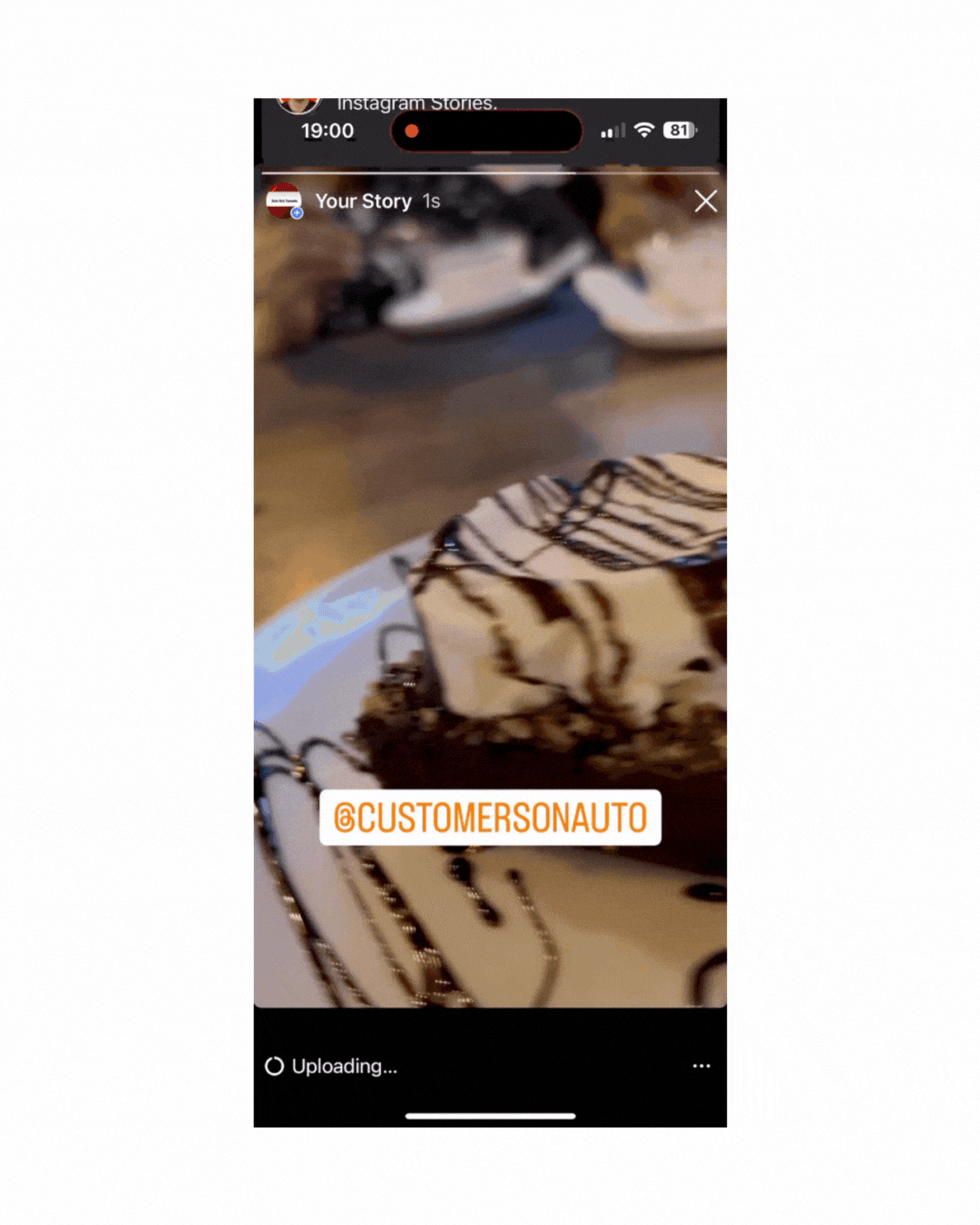 Your customers take a photo or video at your business and upload it to their Instagram Story.They use the @mention feature to tag your Instagram page in their Story.Signs on tables, menus, and around your venue remind them to tag you.Your staff can also give a friendly reminder when taking orders.